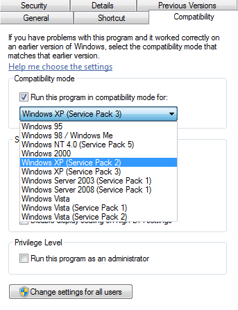 Whenever you face such an issue, it is always better to change the compatibility mode. In this case, I changed to compatibility mode to “Windows XP (Service Pack 2)” and it worked for me. The procedure is simple. Right Click the game icon and go to properties, then select “compatibility” tab. Choose the compatibility mode from the drop down menu.
