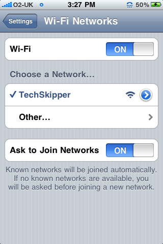 Tap on the “”TechSkipper" network and it will display a little tick mark showing that your iphone is now connected to your PC wifi.