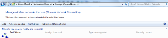 You can view this new network from the path Control Panel\Network and Internet\Manage Wireless Networks as shown below: