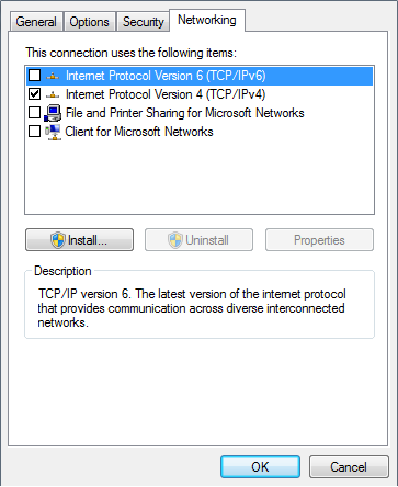 Step 2: Right Click the connection to your ISP and select Networking tab.